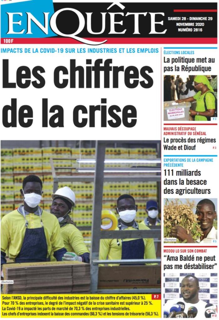 " /> La Une des quotidiens nationaux du Samedi 28 Novembre 2020 Publié le 28 Nov, 2020 À DÉCOUVRIR Les Unes des quotidiens nationaux du 03 novembre 2025 3 Nov, 2025 Source : Ma Revue de presse par Mamadou Ly – rp221.com Partager ->