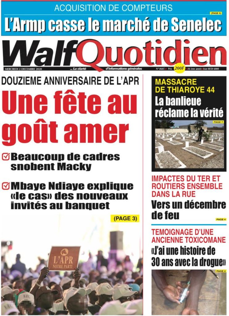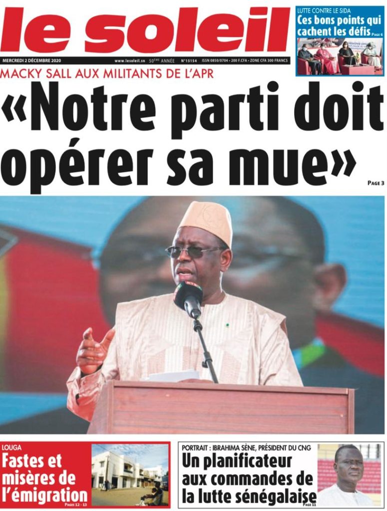 " /> La Une des quotidiens nationaux du Mercredi 2 décembre 2020 Publié le 2 Déc, 2020 À DÉCOUVRIR Les Unes des quotidiens nationaux du 31 octobre 2025 31 Oct, 2025 La rédaction de SenCaféActu Partager ->