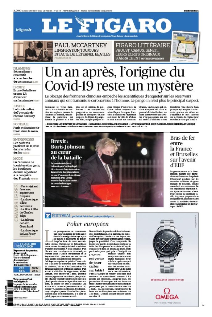 " /> La Une des quotidiens internationaux du Jeudi 10 décembre 2020 Publié le 10 Déc, 2020 À DÉCOUVRIR Les Unes des quotidiens nationaux du 03 novembre 2025 3 Nov, 2025 Partager ->