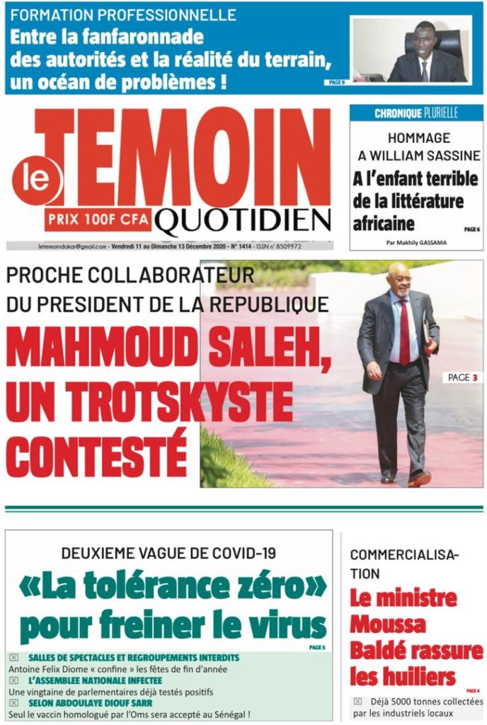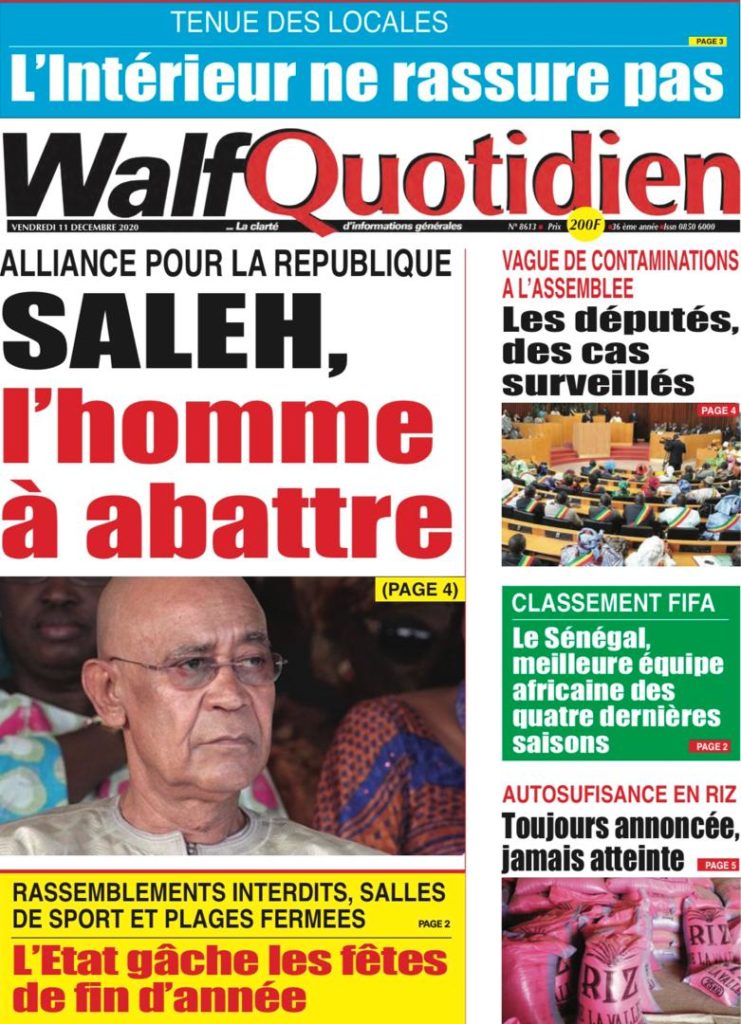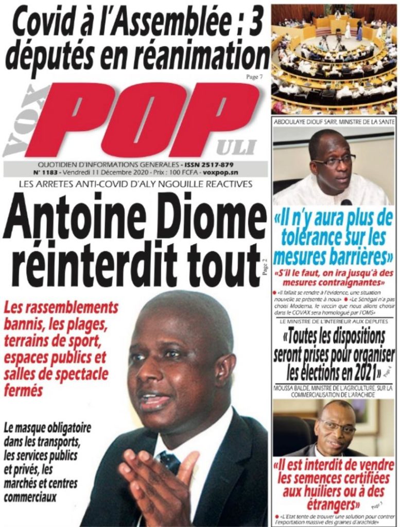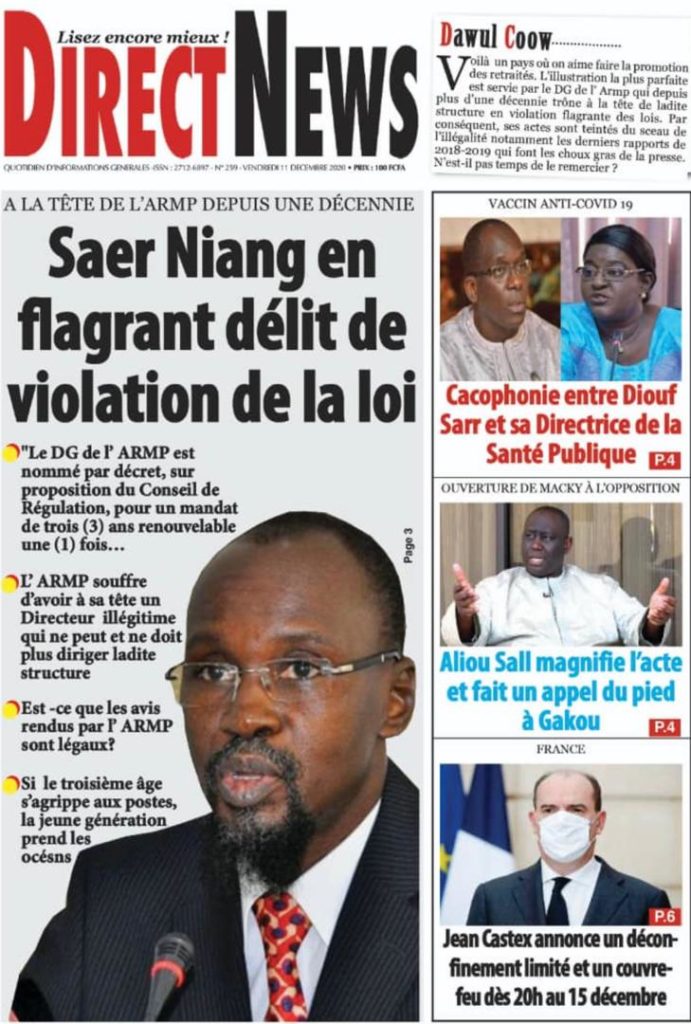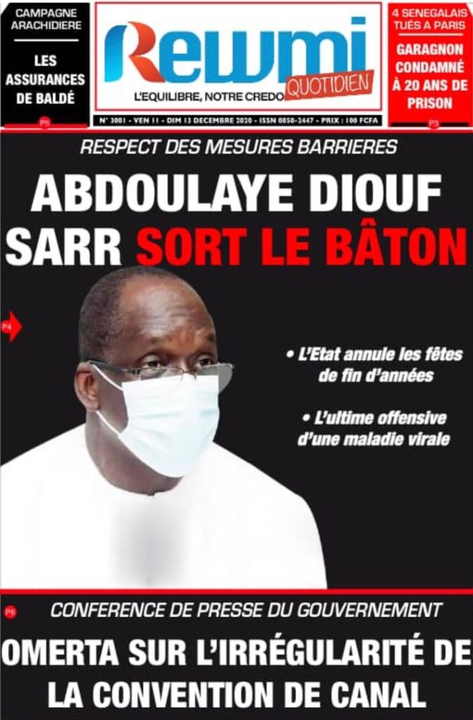 " /> La Une des quotidiens nationaux du Vendredi 11 décembre 2020 Publié le 11 Déc, 2020 À DÉCOUVRIR Les Unes des quotidiens nationaux du 03 novembre 2025 3 Nov, 2025 Source : Ma Revue de presse par Mamadou Ly – rp221.com Partager ->