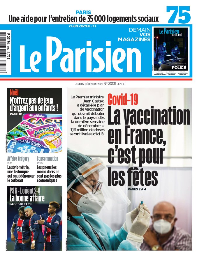 " /> La Une des quotidiens internationaux du jeudi 17 décembre 2020 Publié le 17 Déc, 2020 À DÉCOUVRIR Les Unes des quotidiens nationaux du 03 novembre 2025 3 Nov, 2025 Partager ->