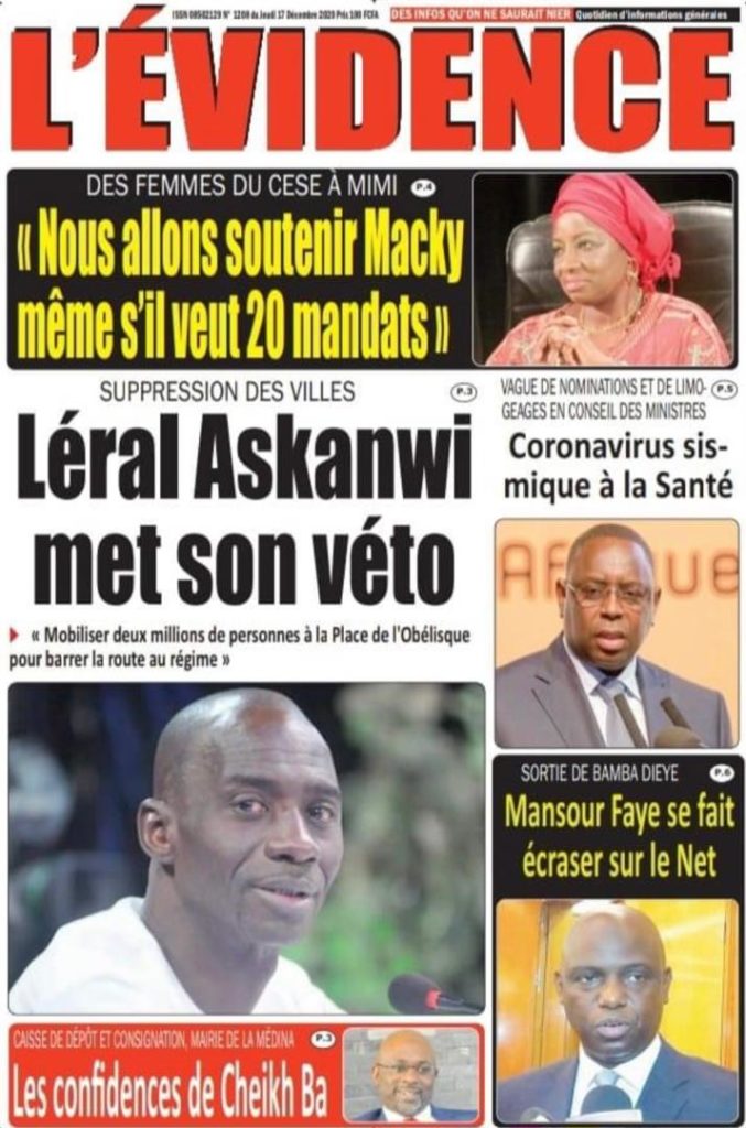 " /> La Une des quotidiens nationaux du jeudi 17 décembre 2020 Publié le 17 Déc, 2020 À DÉCOUVRIR Les Unes des quotidiens nationaux du 03 novembre 2025 3 Nov, 2025 Partager ->