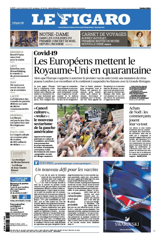 " /> La Une des quotidiens internationaux du lundi 21 décembre 2020 Publié le 21 Déc, 2020 À DÉCOUVRIR Les Unes des quotidiens nationaux du 31 octobre 2025 31 Oct, 2025 Partager ->