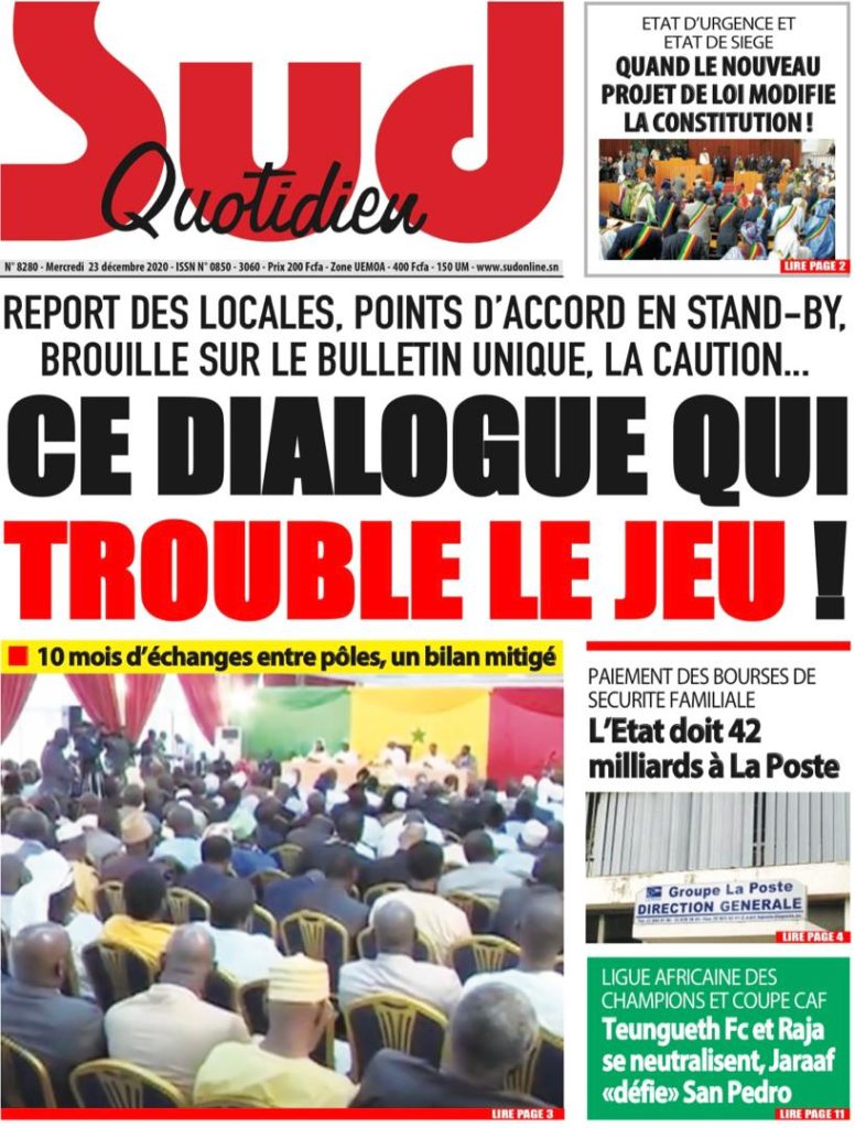 " /> La Une des quotidiens nationaux du Mercredi 23 décembre 2020 Publié le 23 Déc, 2020 À DÉCOUVRIR Les Unes des quotidiens nationaux du 01 décembre 2025 1 Déc, 2025 Partager ->
