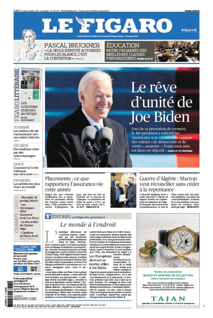 " /> La Une des quotidiens internationaux du jeudi 21 janvier 2021 Publié le 21 Jan, 2021 À DÉCOUVRIR Les Unes des quotidiens nationaux du 31 octobre 2025 31 Oct, 2025 Partager ->