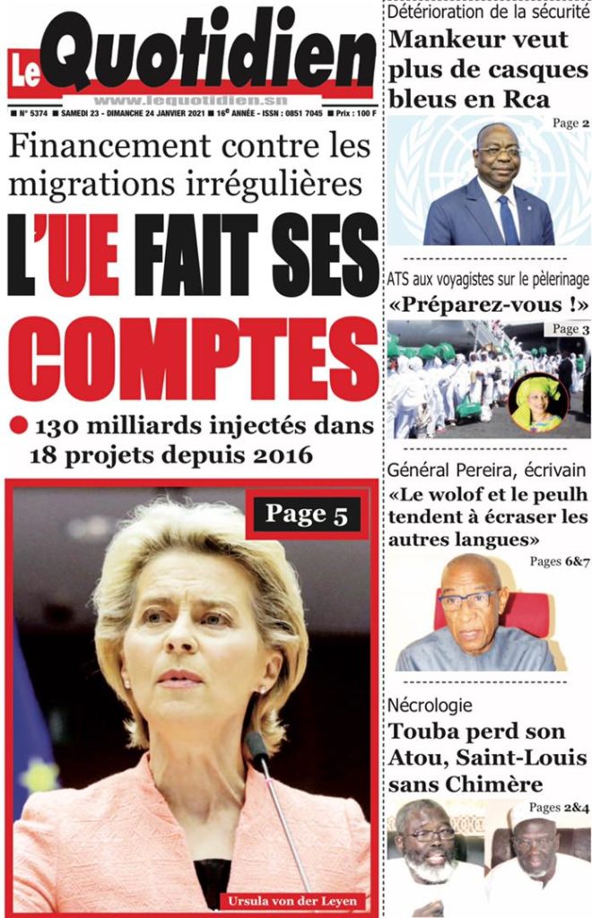 " /> La Une des quotidiens nationaux du samedi 23 janvier 2021 Publié le 23 Jan, 2021 À DÉCOUVRIR Les Unes des quotidiens nationaux du 01 décembre 2025 1 Déc, 2025 Partager ->