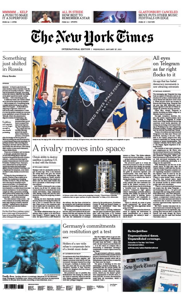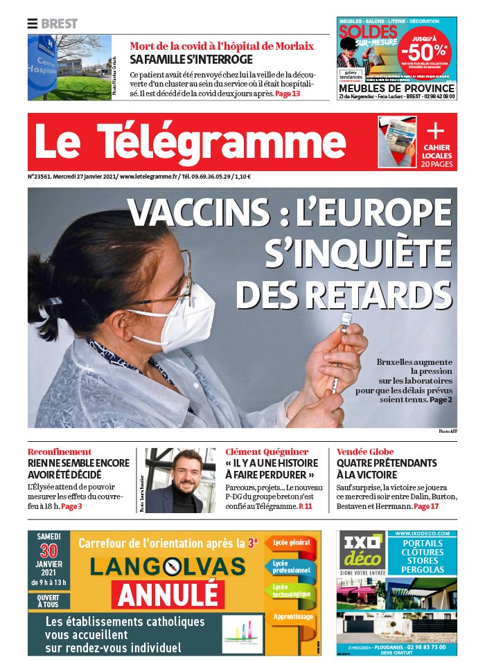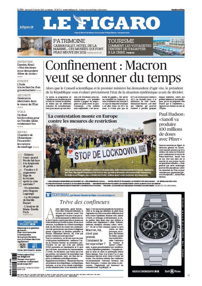 " /> La Une des quotidiens internationaux du mercredi 27 janvier 2021 Publié le 27 Jan, 2021 À DÉCOUVRIR Les Unes des quotidiens nationaux du 03 novembre 2025 3 Nov, 2025 Partager ->