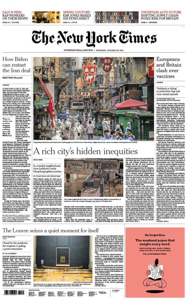 " /> La Une des quotidiens internationaux du jeudi 28 janvier 2021 Publié le 28 Jan, 2021 À DÉCOUVRIR Les Unes des quotidiens nationaux du 07 novembre 2025 7 Nov, 2025 Partager ->