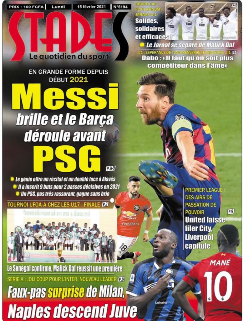 " /> La Une des quotidiens nationaux du lundi 15 février 2021 Publié le 15 Fév, 2021 À DÉCOUVRIR Les Unes des quotidiens nationaux du 24 octobre 2025 24 Oct, 2025 Partager ->
