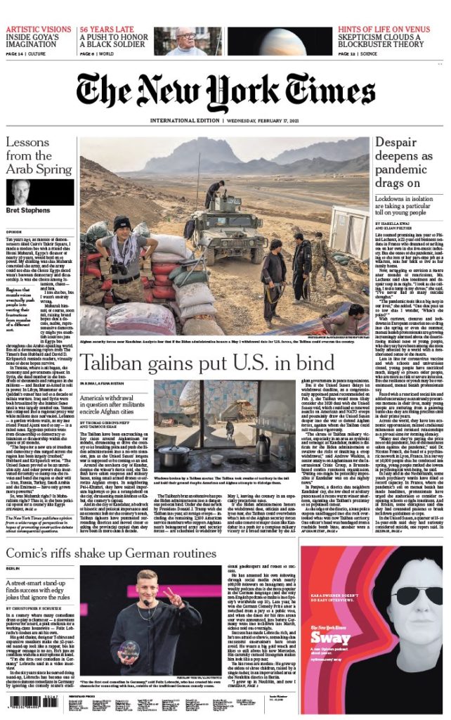 " /> La Une des quotidiens internationaux du mercredi 17 février 2021 Publié le 17 Fév, 2021 À DÉCOUVRIR Les Unes des quotidiens nationaux du 19 novembre 2025 19 Nov, 2025 Partager ->