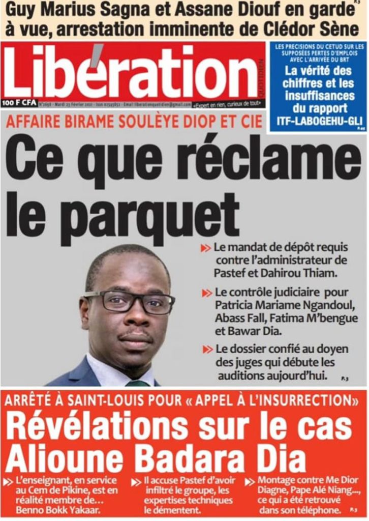 " /> La Une des quotidiens nationaux du mardi 23 février 2021 Publié le 23 Fév, 2021 À DÉCOUVRIR Les Unes des quotidiens nationaux du 01 décembre 2025 1 Déc, 2025 Partager ->