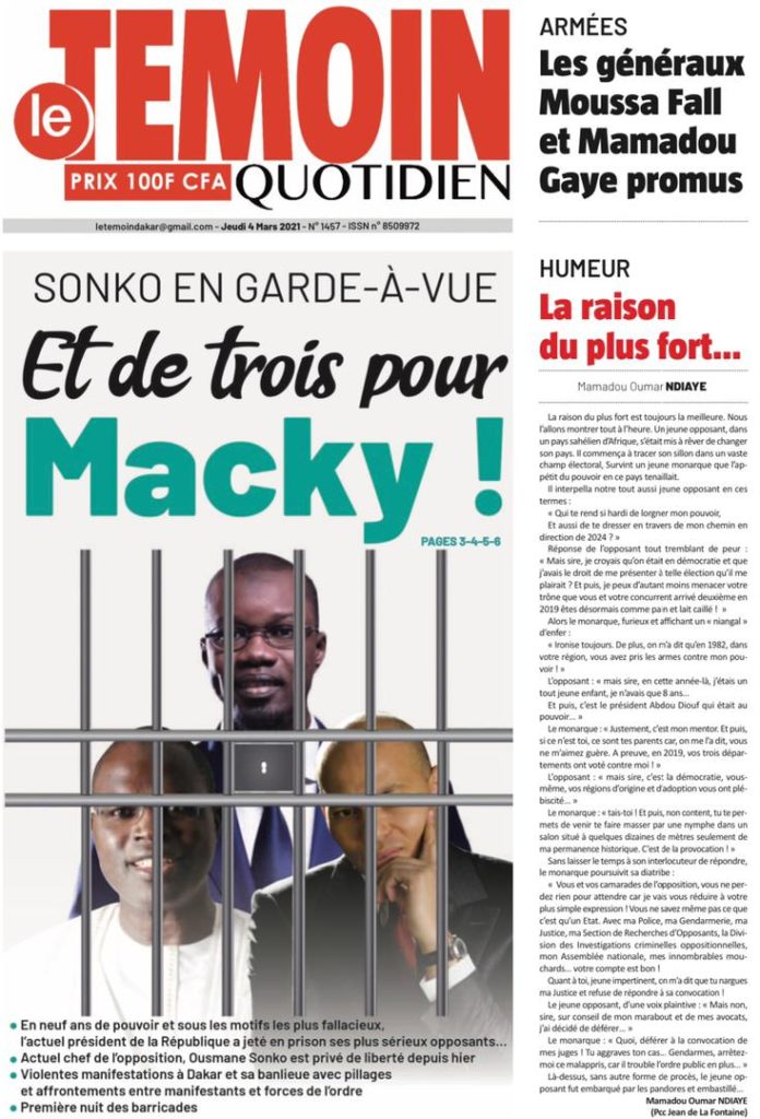" /> La Une des quotidiens nationaux du Jeudi 04 Mars 2021 Publié le 4 Mar, 2021 À DÉCOUVRIR Les Unes des quotidiens nationaux du 15 novembre 2025 15 Nov, 2025 Partager ->