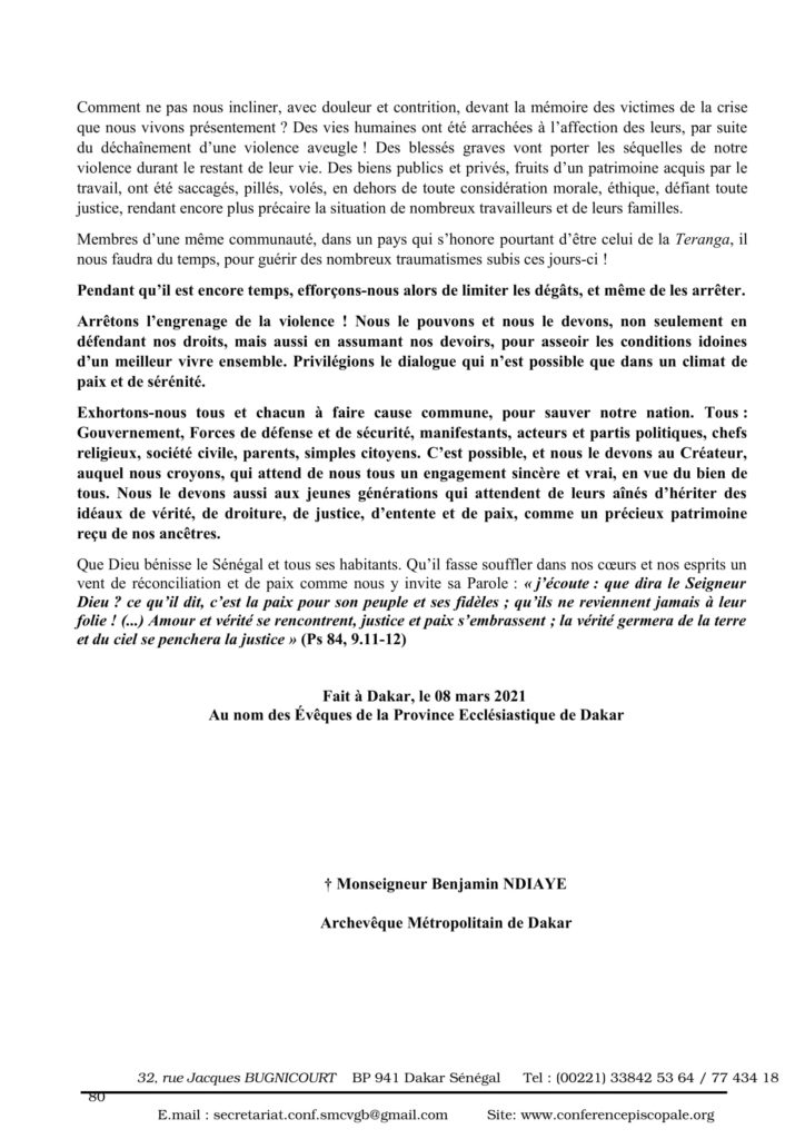 " /> DECLARATION DES ÉVÊQUES DU SÉNÉGAL SUITE AUX MANIFESTATIONS ENREGISTRÉES SUR TOUTE L’ÉTENDUE DU TERRITOIRE Publié le 8 Mar, 2021 À DÉCOUVRIR Communiqué du Conseil des ministres du mercredi 1er octobre… 2 Oct, 2025 Partager ->