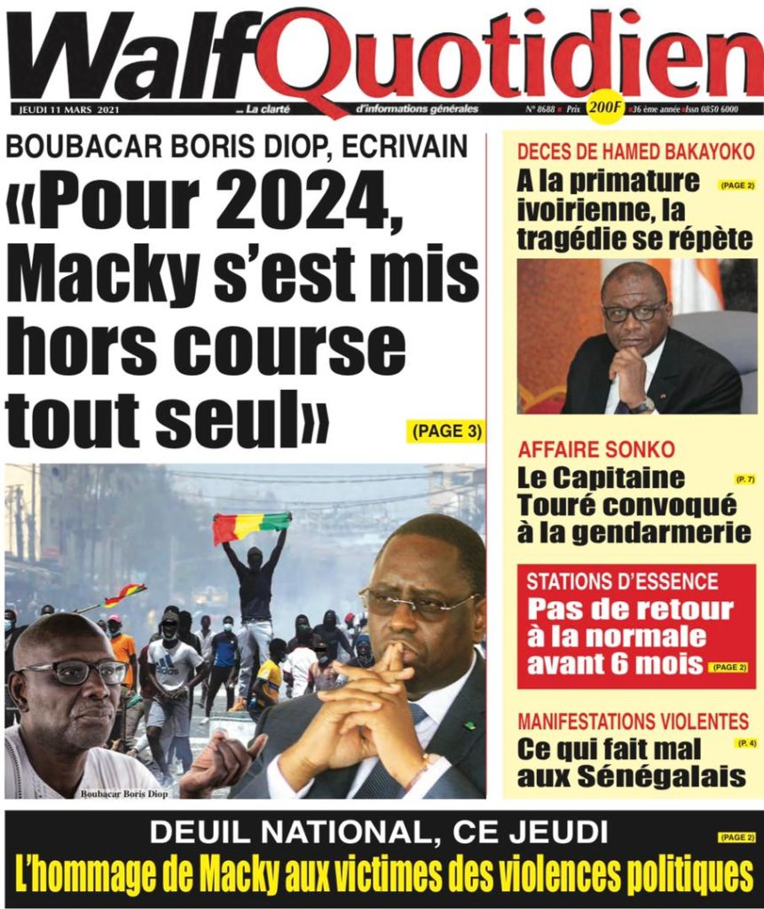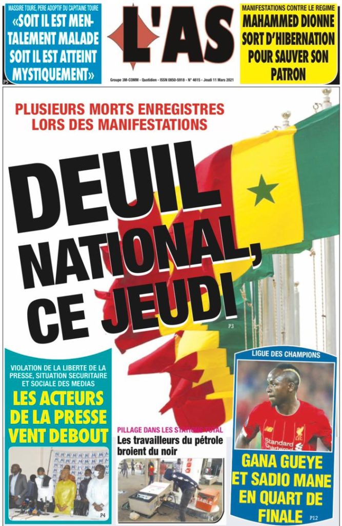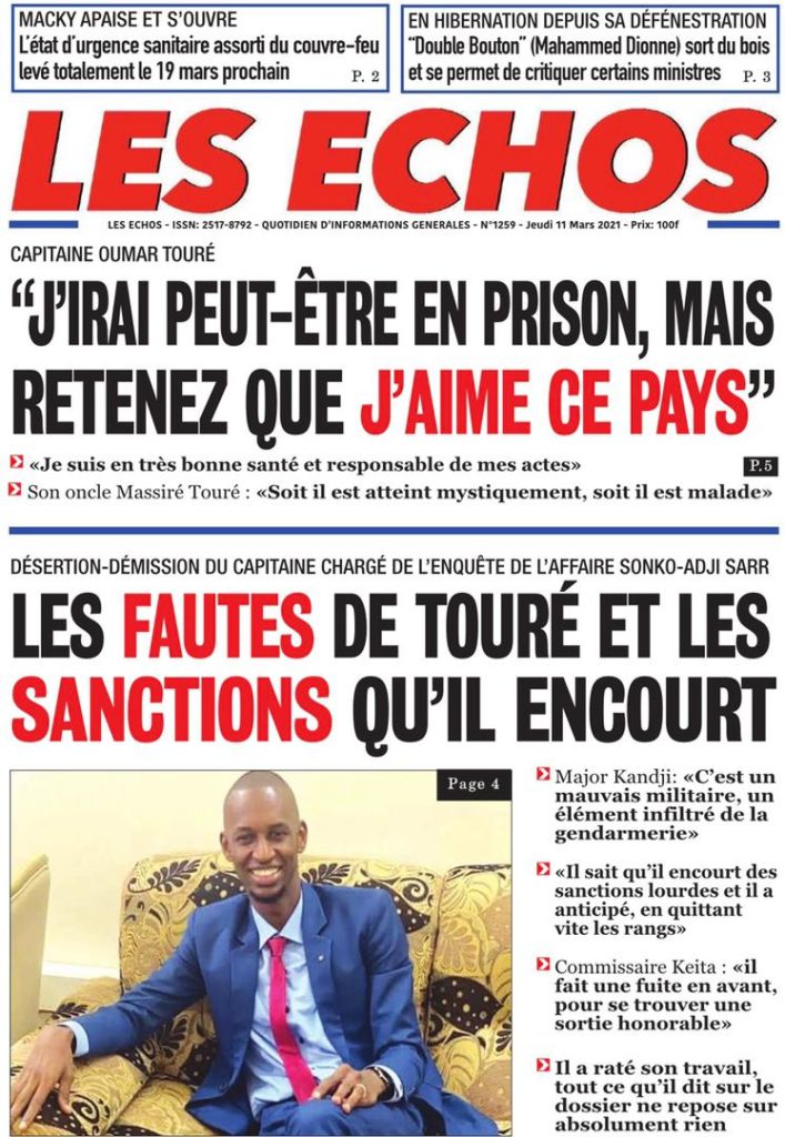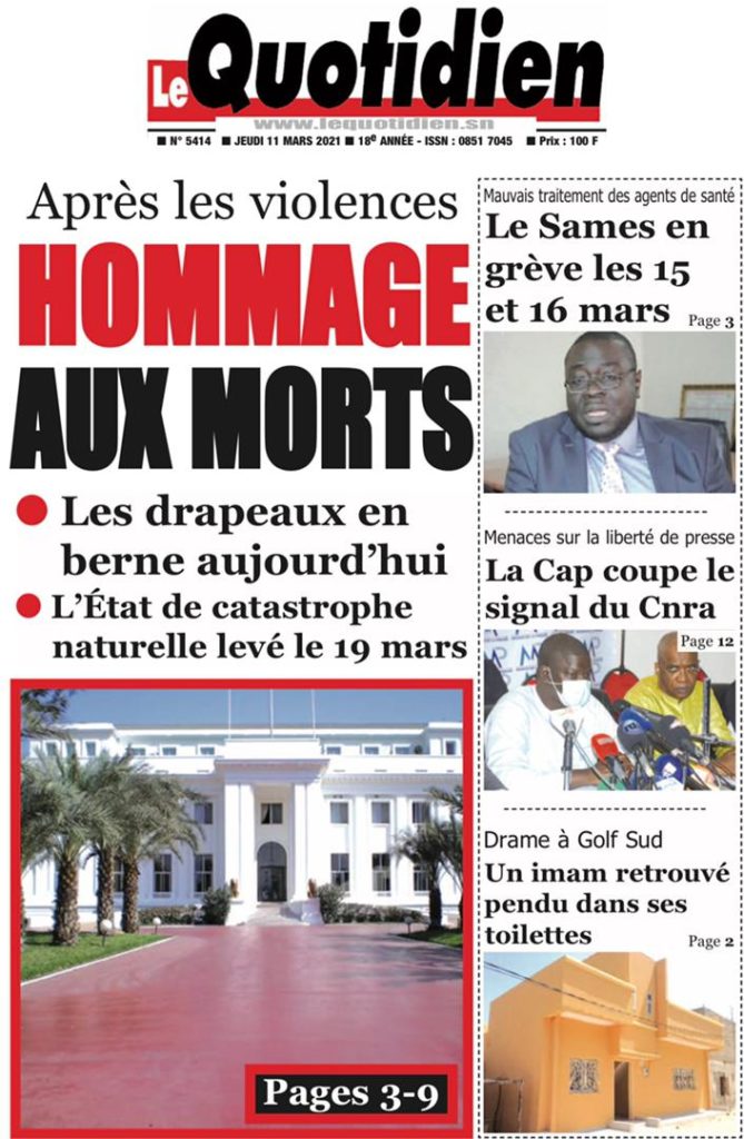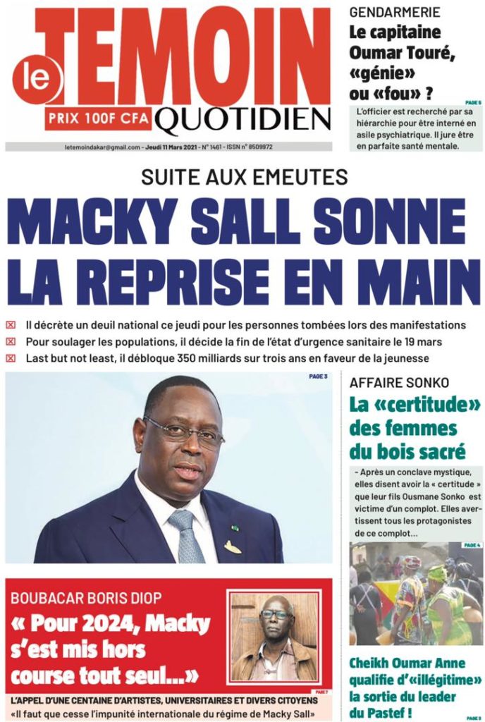 " /> La Une des quotidiens nationaux du Jeudi 11 Mars 2021 Publié le 11 Mar, 2021 À DÉCOUVRIR Les Unes des quotidiens nationaux du 30 octobre 2025 30 Oct, 2025 Partager ->