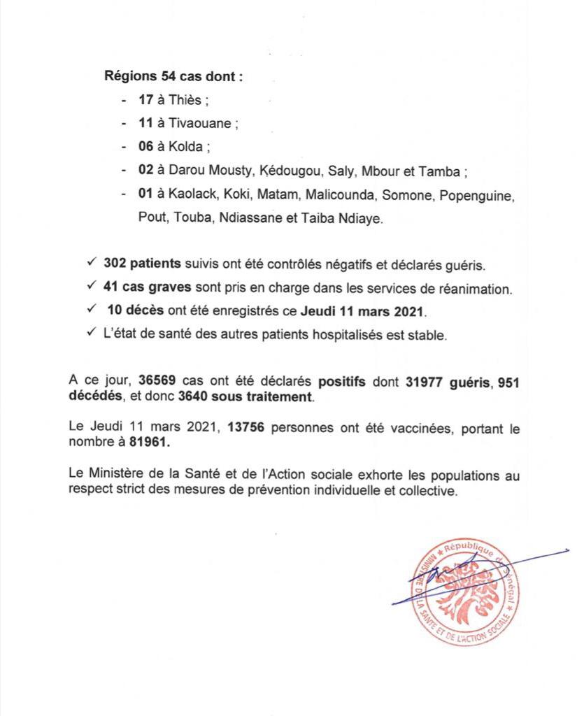 " /> Covid-19 au Sénégal : 198 cas positifs, 302 guéris, 3640 sous traitement Publié le 12 Mar, 2021 À DÉCOUVRIR Gestion des fonds Covid-19 : Le ministre de la Justice fait… 29 Juil, 2024 Communiqué N°376 du 12 Mars 2021 Partager ->