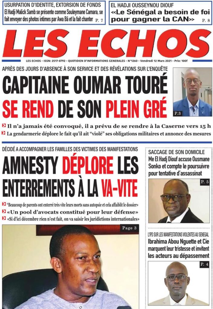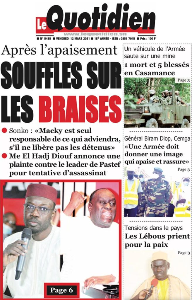 " /> La Une des quotidiens nationaux du Vendredi 12 Mars 2021 Publié le 12 Mar, 2021 À DÉCOUVRIR Les Unes des quotidiens nationaux du 01 décembre 2025 1 Déc, 2025 Partager ->