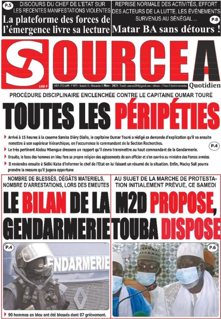 " /> La Une des quotidiens nationaux du Samedi 13 Mars 2021 Publié le 13 Mar, 2021 À DÉCOUVRIR Les Unes des quotidiens nationaux du 01 décembre 2025 1 Déc, 2025 Partager ->