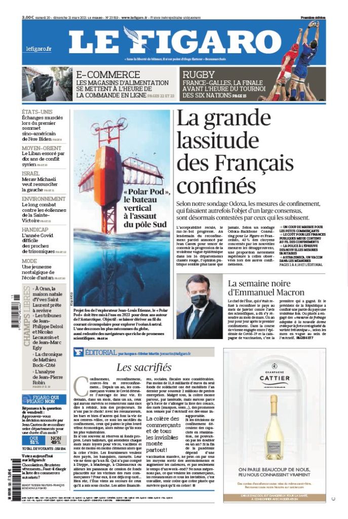 " /> La Une des quotidiens internationaux du Samedi 20 Mars 2021 Publié le 20 Mar, 2021 À DÉCOUVRIR Les Unes des quotidiens nationaux du 31 octobre 2025 31 Oct, 2025 Partager ->