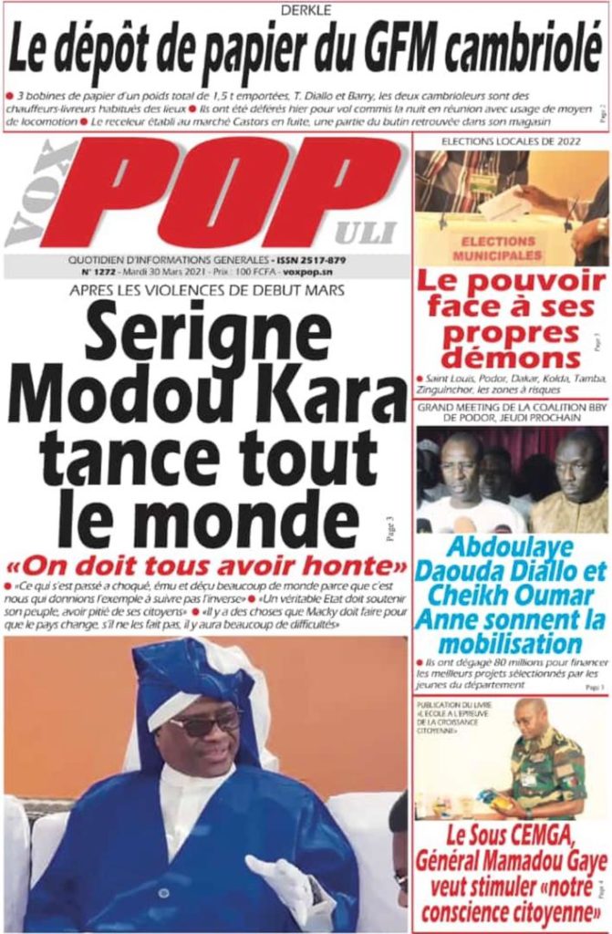 " /> La Une des quotidiens nationaux du Mardi 30 Mars 2021 Publié le 30 Mar, 2021 À DÉCOUVRIR Les Unes des quotidiens nationaux du 01 décembre 2025 1 Déc, 2025 Partager ->
