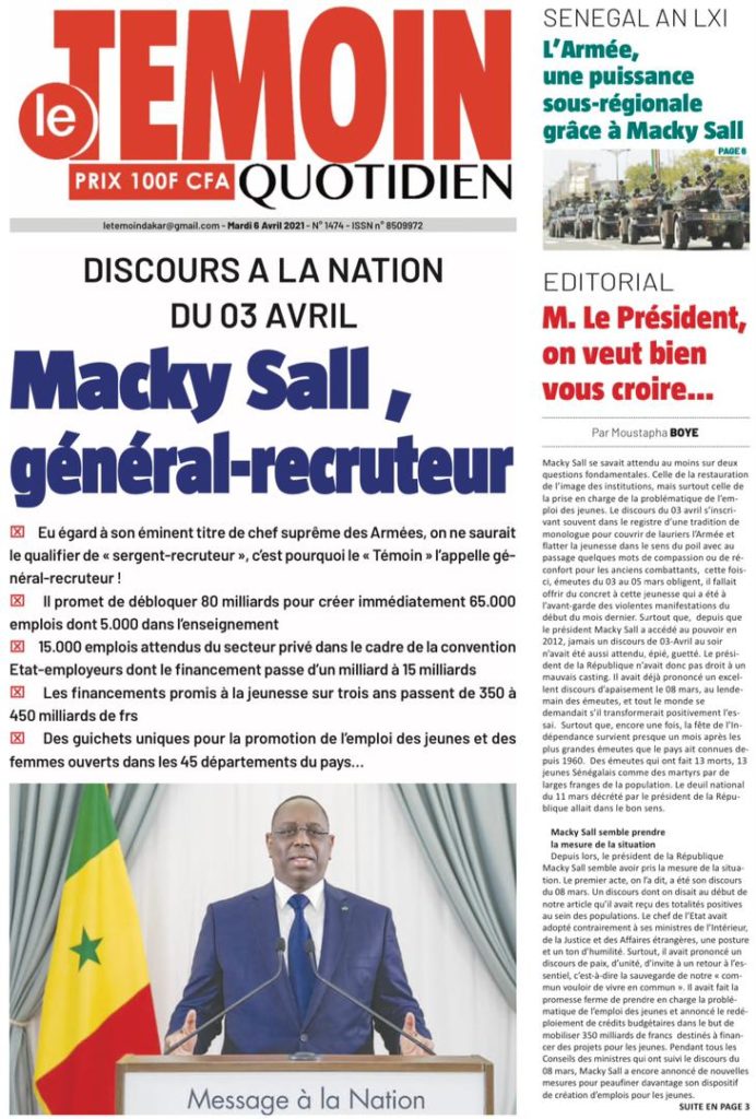 " /> La Une des quotidiens nationaux du Mardi 06 Avril 2021 Publié le 6 Avr, 2021 À DÉCOUVRIR Les Unes des quotidiens nationaux du 31 octobre 2025 31 Oct, 2025 Partager ->
