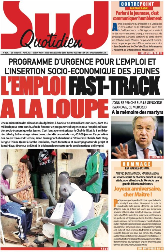 " /> La Une des quotidiens nationaux du Mercredi 07 Avril 2021 Publié le 7 Avr, 2021 À DÉCOUVRIR Les Unes des quotidiens nationaux du 07 novembre 2025 7 Nov, 2025 Partager ->