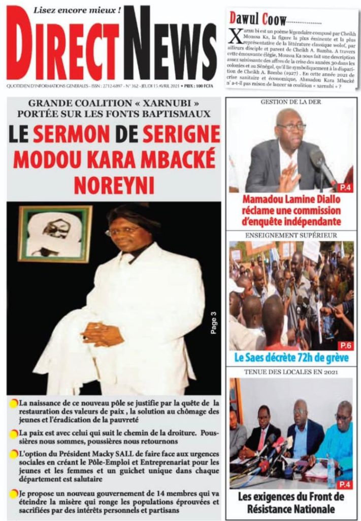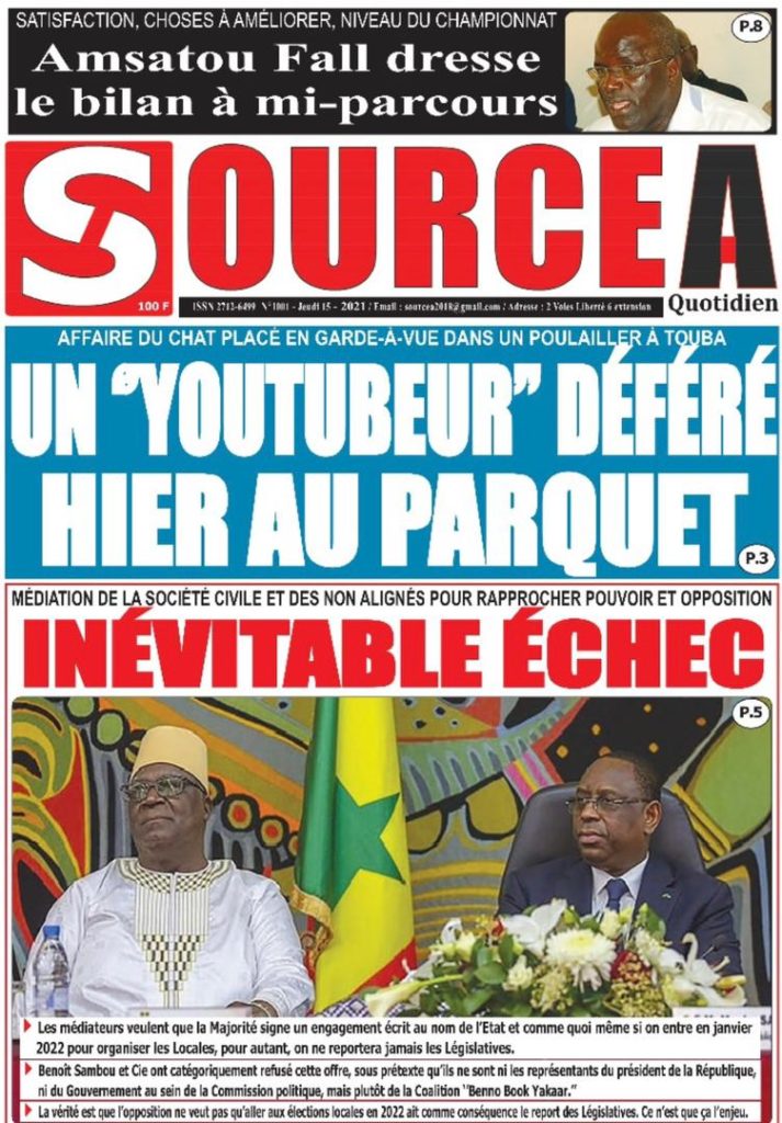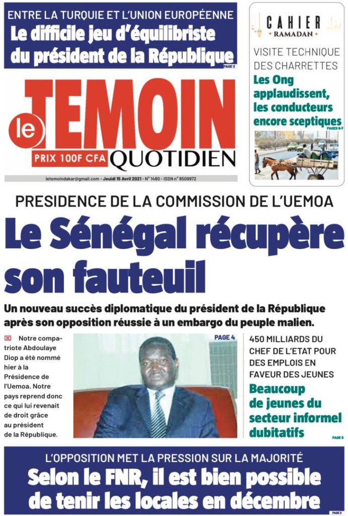 " /> La Une des quotidiens nationaux du Jeudi 15 Avril 2021 Publié le 15 Avr, 2021 À DÉCOUVRIR Les Unes des quotidiens nationaux du 07 novembre 2025 7 Nov, 2025 Partager ->