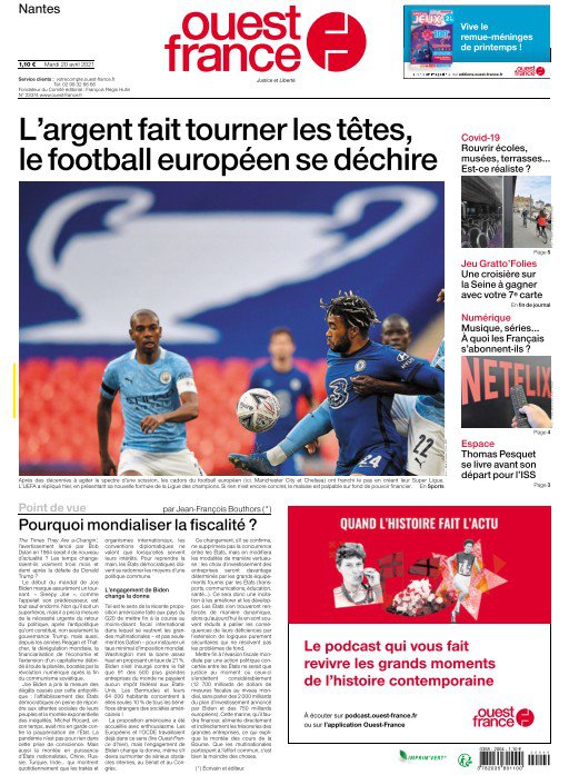 " /> La Une des quotidiens internationaux du Mardi 20 Avril 2021 Publié le 20 Avr, 2021 À DÉCOUVRIR Les Unes des quotidiens nationaux du 01 décembre 2025 1 Déc, 2025 Partager ->