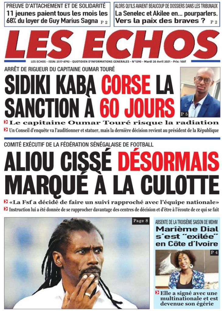 " /> La Une des quotidiens nationaux du Mardi 20 Avril 2021 Publié le 20 Avr, 2021 À DÉCOUVRIR Les Unes des quotidiens nationaux du 31 octobre 2025 31 Oct, 2025 Partager ->