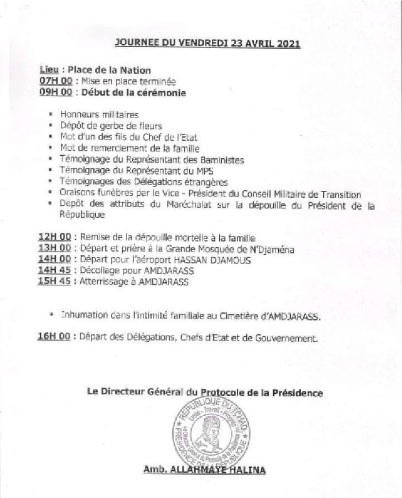 " /> Programme détaillé des obsèques du président Idriss Deby Publié le 20 Avr, 2021 À DÉCOUVRIR Coumba Gawlo appelle à un appui renforcé aux initiatives… 30 Juil, 2025 Partager ->