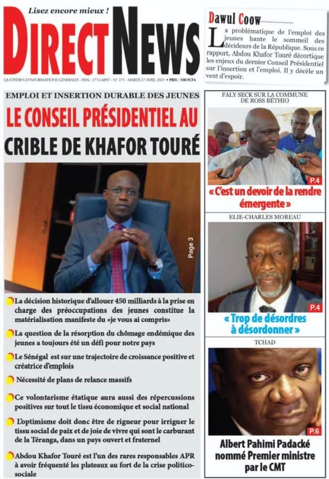 " /> La Une des quotidiens nationaux du Mardi 27 Avril 2021 Publié le 27 Avr, 2021 À DÉCOUVRIR Les Unes des quotidiens nationaux du 30 octobre 2025 30 Oct, 2025 Partager ->