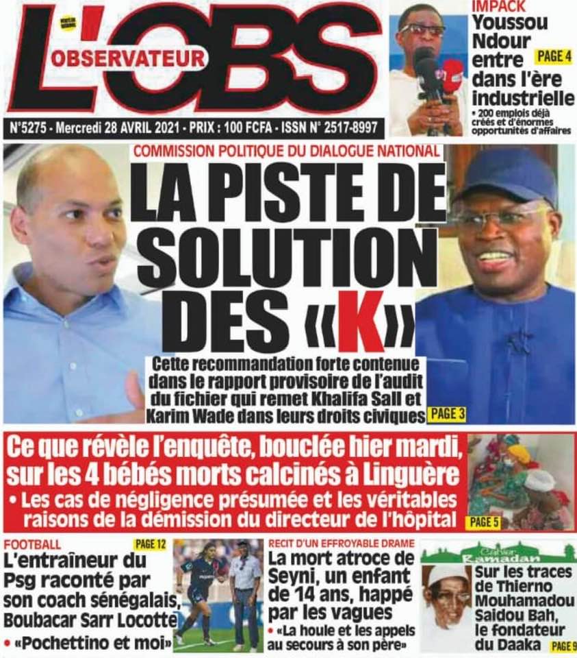 " /> La Une des quotidiens nationaux du Mercredi 28 Avril 2021 Publié le 28 Avr, 2021 À DÉCOUVRIR Les Unes des quotidiens nationaux du 31 octobre 2025 31 Oct, 2025 Partager ->