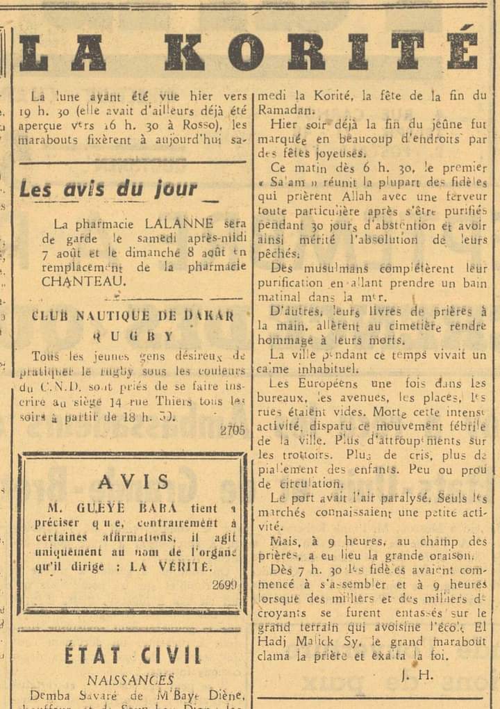 " /> [Archive] Célébration de la Korité en 1950 (Source: Le Soleil) Publié le 14 Mai, 2021 À DÉCOUVRIR Naufrage du « Joola » : Enquête sur le Titanic africain… 26 Sep, 2022 Partager ->
