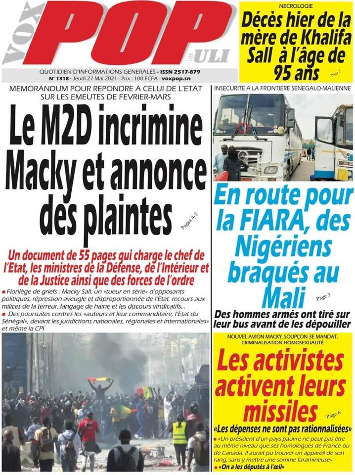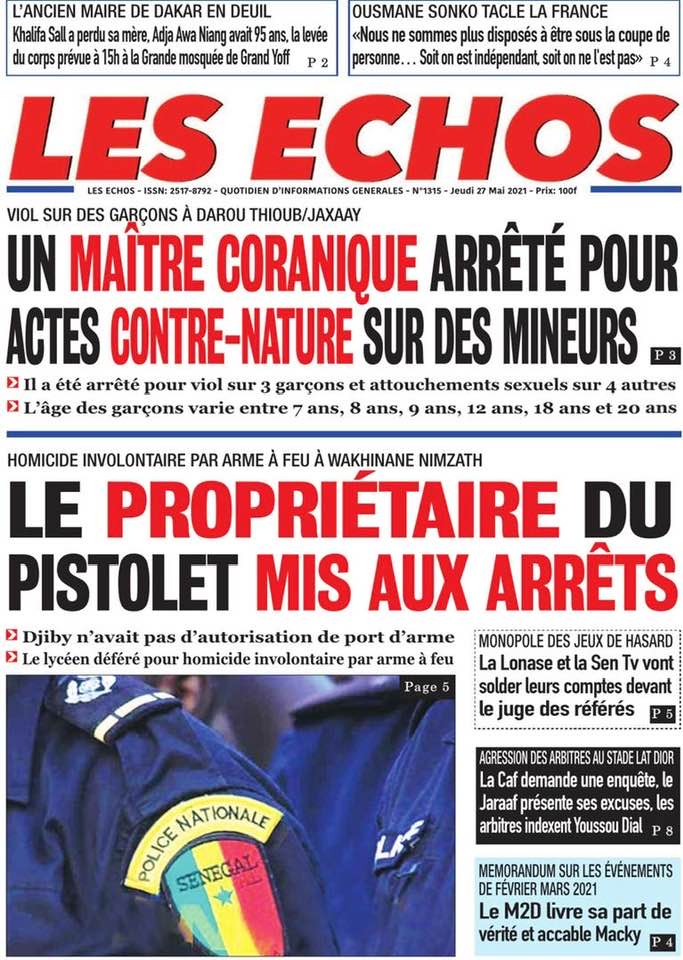 " /> La Une des quotidiens nationaux du Jeudi 27 Mai 2021 Publié le 27 Mai, 2021 À DÉCOUVRIR Les Unes des quotidiens nationaux du 05 novembre 2025 5 Nov, 2025 Partager ->