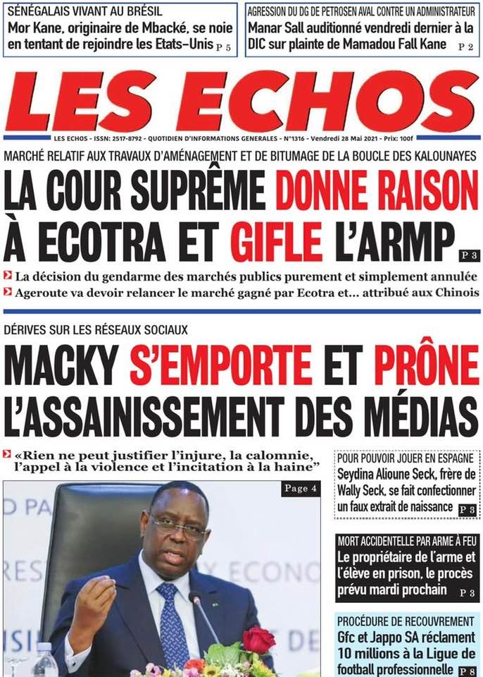 " /> La Une des quotidiens nationaux du Vendredi 28 Mai 2021 Publié le 28 Mai, 2021 À DÉCOUVRIR Les Unes des quotidiens nationaux du 01 décembre 2025 1 Déc, 2025 Partager ->