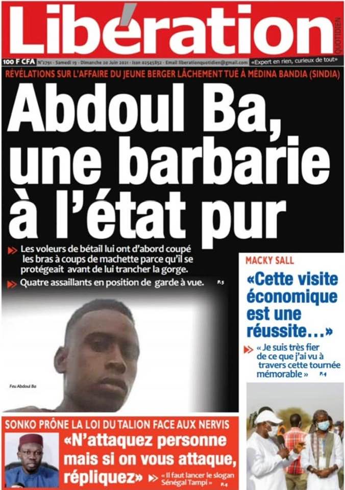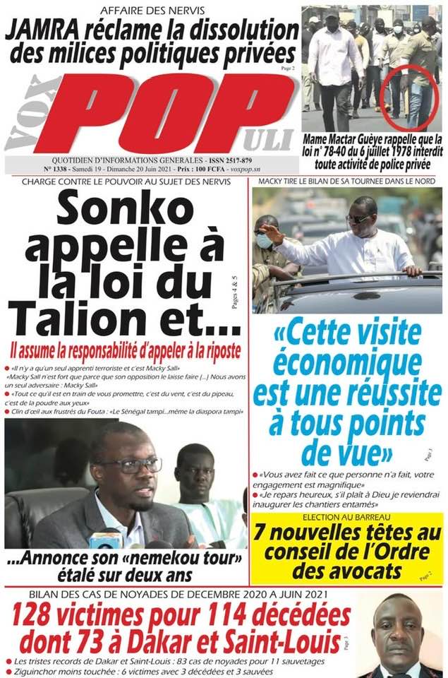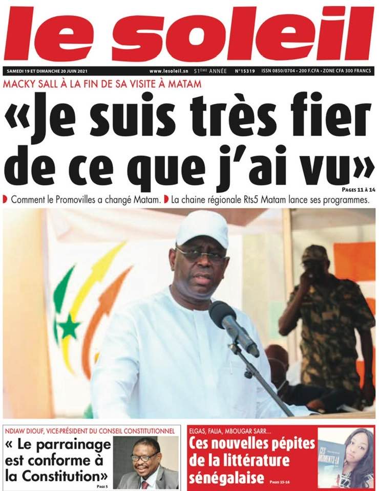 " /> La Une des quotidiens nationaux du Samedi 19 Juin 2021 Publié le 19 Juin, 2021 À DÉCOUVRIR Les Unes des quotidiens nationaux du 19 novembre 2025 19 Nov, 2025 Partager ->