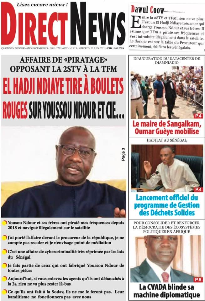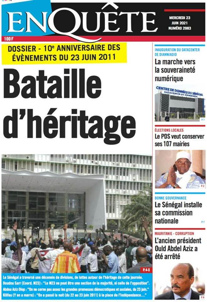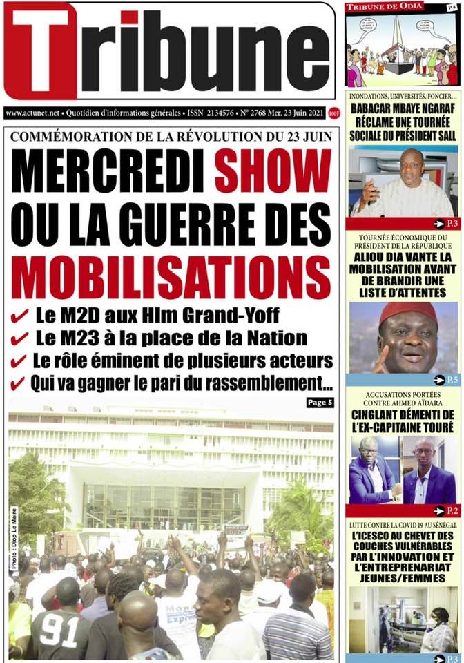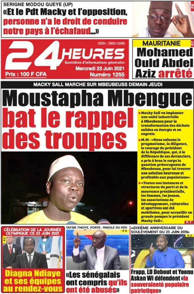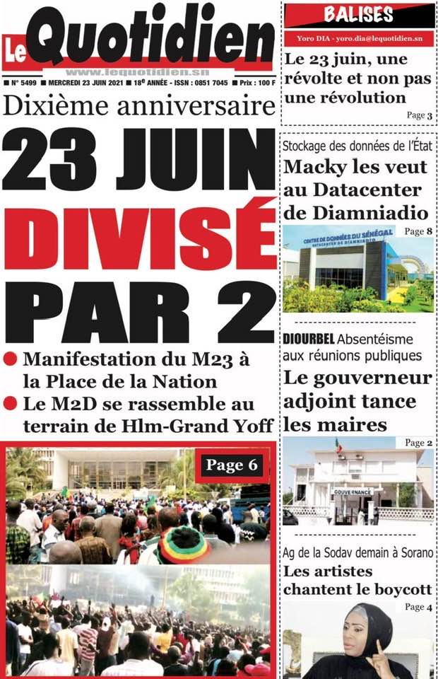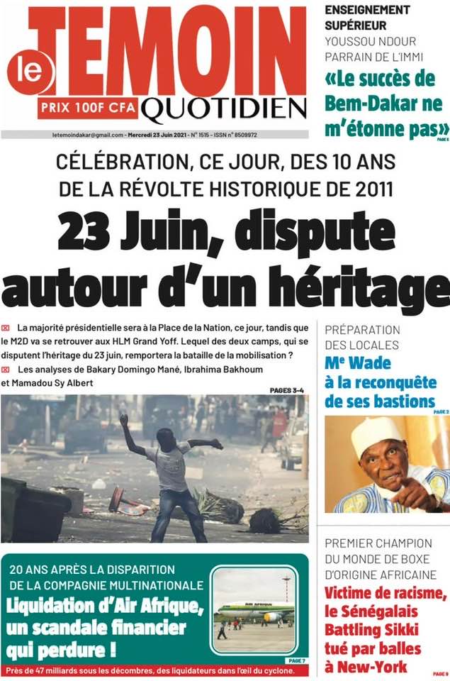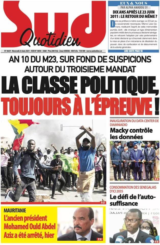 " /> La Une des quotidiens nationaux du Mercredi 23 Juin 2021 Publié le 23 Juin, 2021 À DÉCOUVRIR Les Unes des quotidiens nationaux du 06 novembre 2025 6 Nov, 2025 Partager ->