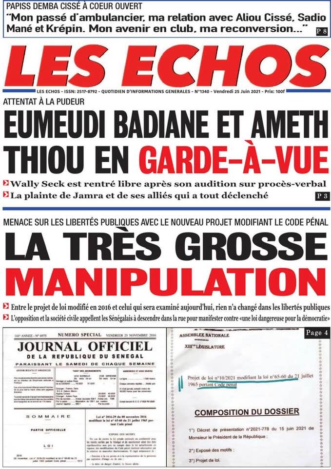 " /> La Une des quotidiens nationaux du Vendredi 25 Juin 2021 Publié le 25 Juin, 2021 À DÉCOUVRIR Les Unes des quotidiens nationaux du 19 novembre 2025 19 Nov, 2025 Partager ->