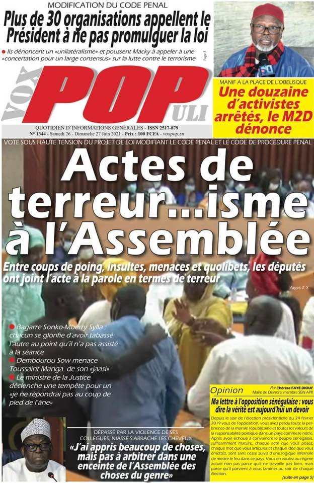 " /> La Une des quotidiens nationaux du Samedi 26 Juin 2021 Publié le 26 Juin, 2021 À DÉCOUVRIR Les Unes des quotidiens nationaux du 19 novembre 2025 19 Nov, 2025 Partager ->