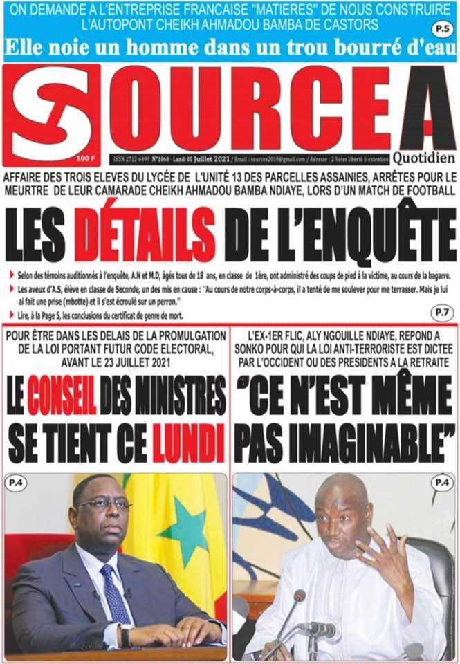 " /> La Une des quotidiens nationaux du Lundi 5 Juillet 2021 Publié le 5 Juil, 2021 À DÉCOUVRIR Les Unes des quotidiens nationaux du 29 octobre 2025 29 Oct, 2025 Partager ->