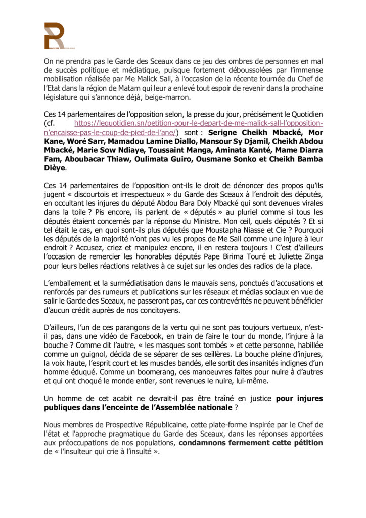 " /> Pétition de 14 députés contre Me Malick Sall : que des affirmations contraires à la vérité ! Publié le 6 Juil, 2021 À DÉCOUVRIR Dakar a un nouveau maire : la Cour suprême écarte Barthélémy… 25 Août, 2025 Partager ->