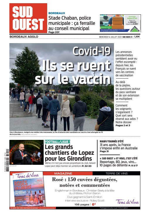 " /> La Une des quotidiens internationaux du Mercredi 14 Juillet 2021 Publié le 14 Juil, 2021 À DÉCOUVRIR Les Unes des quotidiens nationaux du 30 octobre 2025 30 Oct, 2025 Partager ->