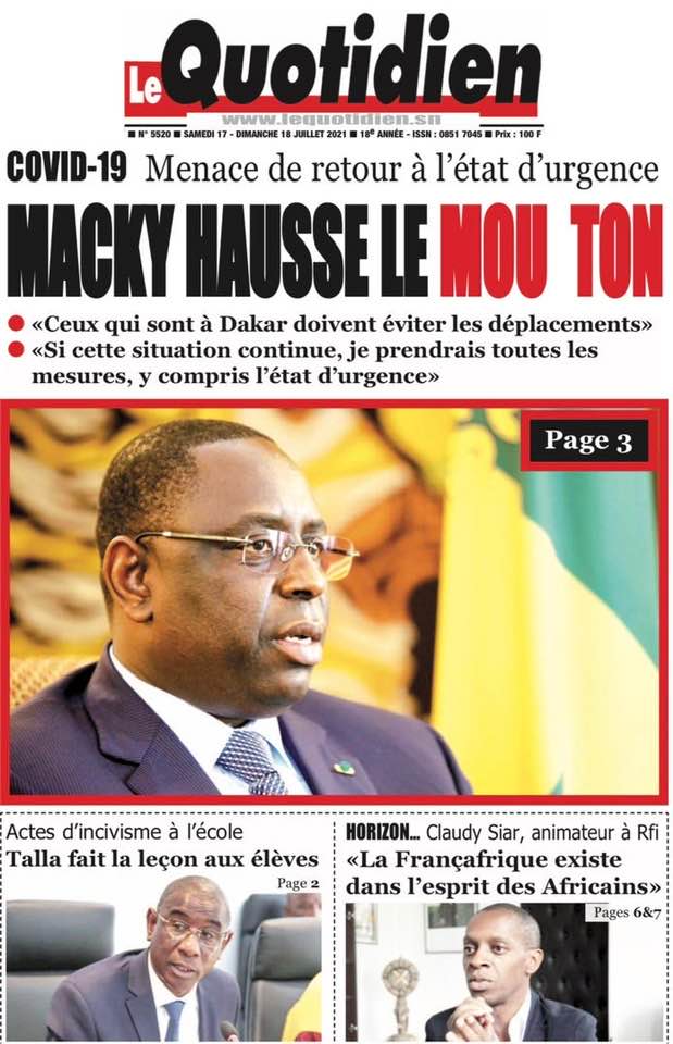 " /> La Une des quotidiens nationaux du Samedi 17 Juillet 2021 Publié le 17 Juil, 2021 À DÉCOUVRIR Les Unes des quotidiens nationaux du 19 novembre 2025 19 Nov, 2025 Partager ->