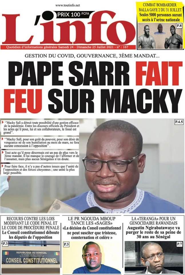 " /> La Une des quotidiens nationaux du Samedi 24 Juillet 2021 Publié le 24 Juil, 2021 À DÉCOUVRIR Les Unes des quotidiens nationaux du 03 novembre 2025 3 Nov, 2025 Partager ->