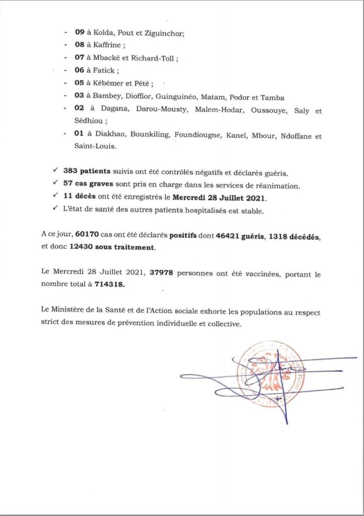 " /> Covid-19 au Sénégal : 884 cas positifs, 383 guéris, 12430 sous traitement Publié le 29 Juil, 2021 À DÉCOUVRIR Gestion des fonds Covid-19 : Le ministre de la Justice fait… 29 Juil, 2024 Communiqué N°515 du 29 Juillet 2021 Partager ->