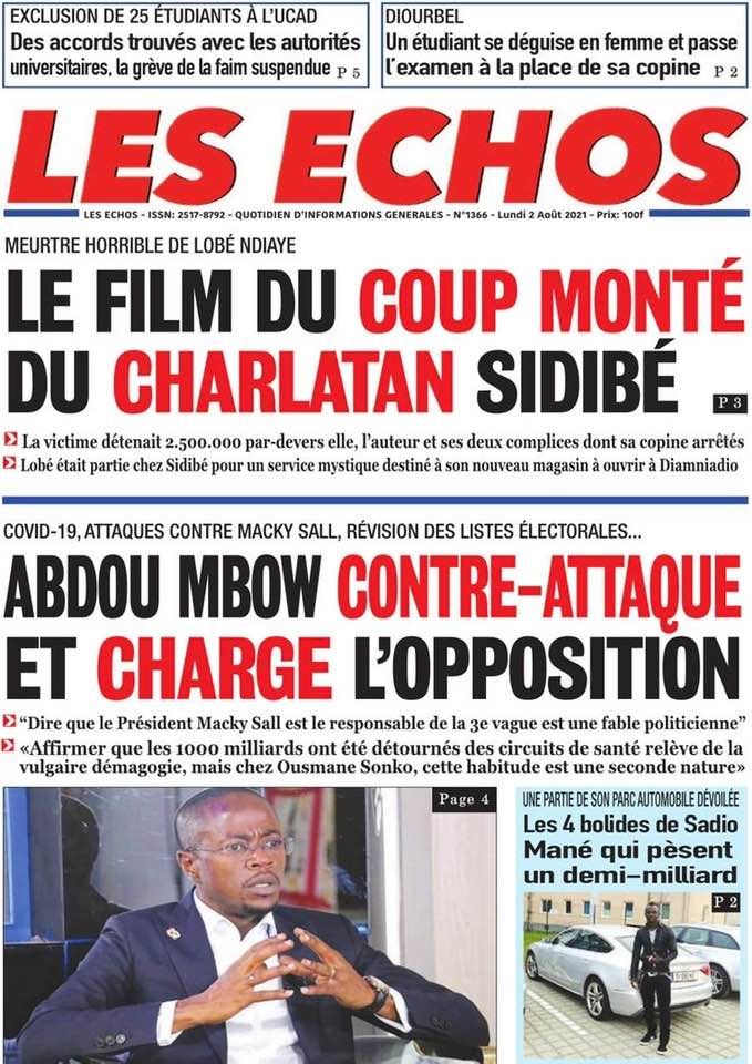 " /> La Une des quotidiens nationaux du Lundi 02 Août 2021 Publié le 2 Août, 2021 À DÉCOUVRIR Les Unes des quotidiens nationaux du 19 novembre 2025 19 Nov, 2025 Partager ->
