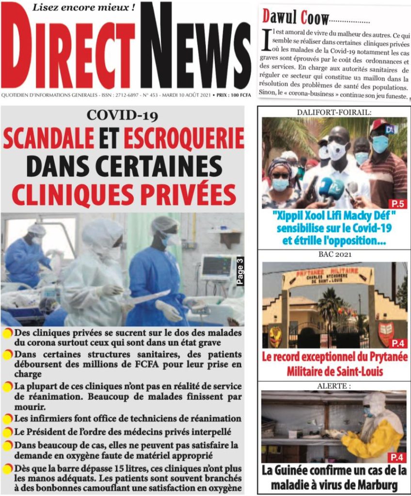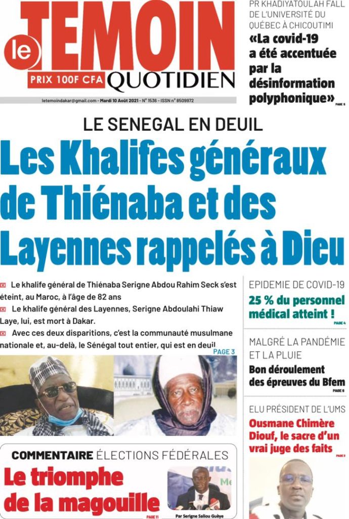 " /> La Une des quotidiens nationaux du Mardi 10 Août 2021 Publié le 10 Août, 2021 À DÉCOUVRIR Les Unes des quotidiens nationaux du 19 novembre 2025 19 Nov, 2025 Partager ->