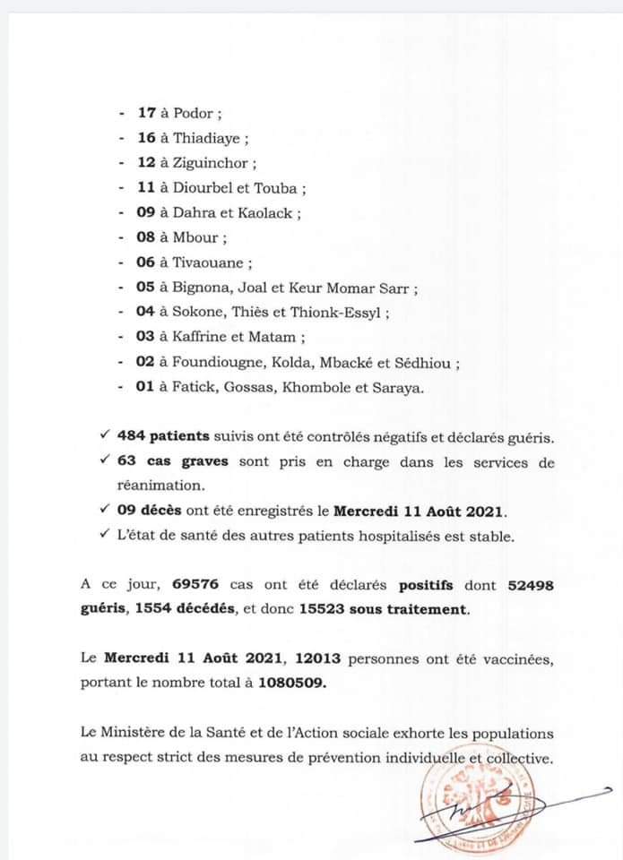 " /> Covid-19 : 656 Cas et 9 décès Publié le 12 Août, 2021 À DÉCOUVRIR Communiqué du Conseil des ministres du mercredi 1er octobre… 2 Oct, 2025 Partager ->