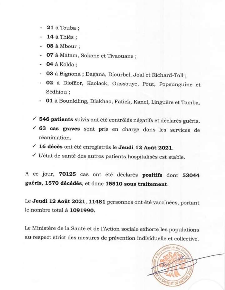 " /> Covid-19 : 549 Cas et 16 décès Publié le 13 Août, 2021 À DÉCOUVRIR Communiqué du Conseil des ministres du mercredi 12 novembre… 12 Nov, 2025 Partager ->