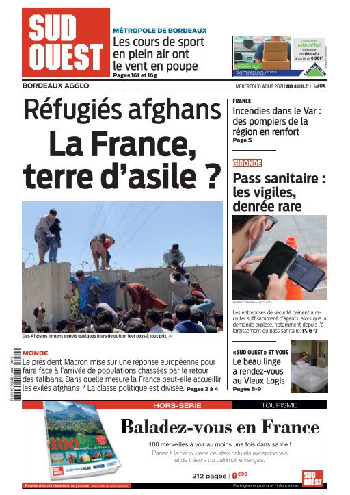 " /> La Une des quotidiens internationaux du Mercredi 18 Août 2021 Publié le 18 Août, 2021 À DÉCOUVRIR Les Unes des quotidiens nationaux du 31 octobre 2025 31 Oct, 2025 Partager ->