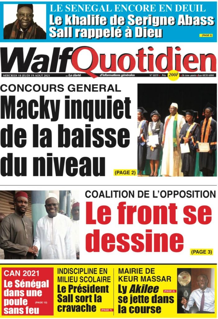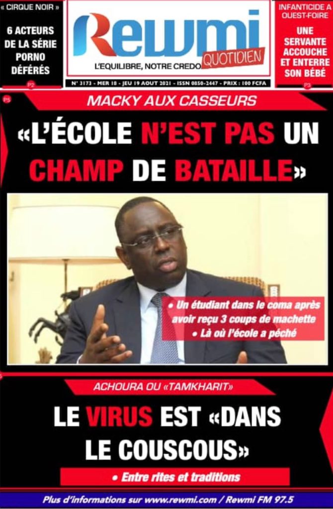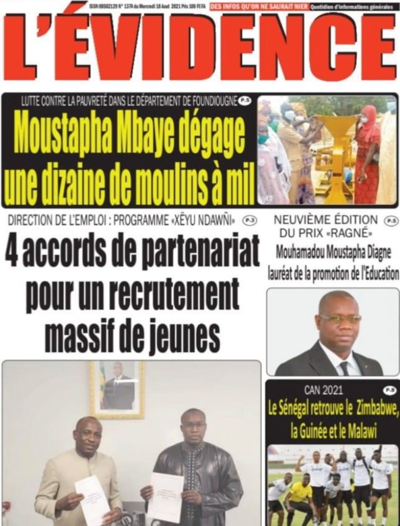 " /> La Une des quotidiens nationaux du Mercredi 18 Août 2021 Publié le 18 Août, 2021 À DÉCOUVRIR Les Unes des quotidiens nationaux du 31 octobre 2025 31 Oct, 2025 Partager ->